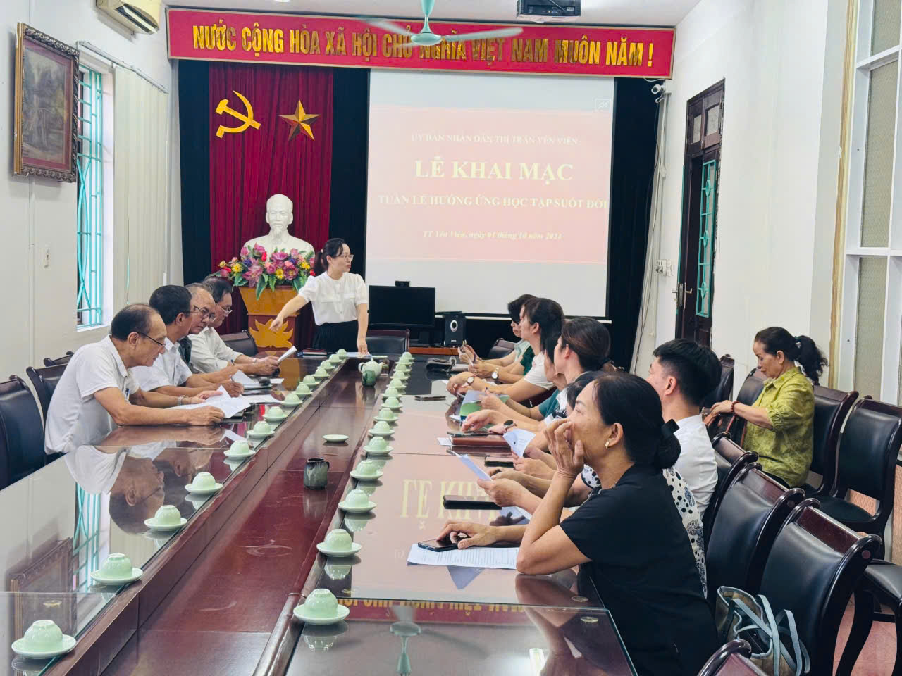 Thực hiện Kế hoạch số 257KH-UBND ngày 25 tháng 9 năm 2024 của Ủy ban nhân dân huyện Gia Lám, sáng ngày 01/10/2024, Ủy ban nhân dân thị trấn Yên Viên đã tổ chức khai mạc Tuần lễ hưởng ứng học tập suốt đời (gọi tắt là Tuần lễ) với sự tham dự là đại diện của các trường học và các tổ dân phố trên địa bàn. Trường mầm non Thị trấn Yên Viên có đồng chí Nguyễn Thị Thùy Dương, phó hiệu trưởng nhà trường đã tham dự.