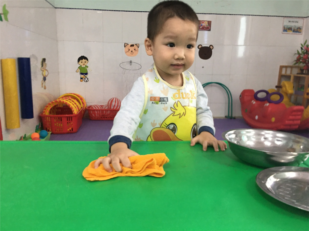 Đối với trẻ 2 tuổi, bố mẹ nên gợi ý cho những việc nhỏ phụ giúp gia đình. Ở lớp các con cũng được các cô cho làm những việc vừa sức của mình như: lau bàn, cất ghế, tưới cây … tìm nhiều việc vừa sức để các con làm giúp. Con làm xong phải được khen thật nhiều. Quan trọng hơn là phải củng cố lòng tự tin cho các con. Ngay cả khi con làm chưa giỏi cũng phải khen. Có vậy các con mới có tự tin, để lần sau làm tốt hơn. Chính vì vậy, ngay từ những việc đơn giản, nhỏ nhặt nhất hãy để các con được tự làm như: rửa tay, lau bàn, lấy ghế về bàn ăn, buộc dây giầy, cài cúc áo, hay đơn giản là tự đeo yếm trước khi ăn cơm. Những việc này dù có mất thời gian cũng nên để trẻ tự làm. Chính vì lẽ đó, cha mẹ hãy giành nhiều thời gian, chịu khó dạy con cách làm thì bây giờ có thể bận bịu nhưng sau này sẽ là những ngày vui.